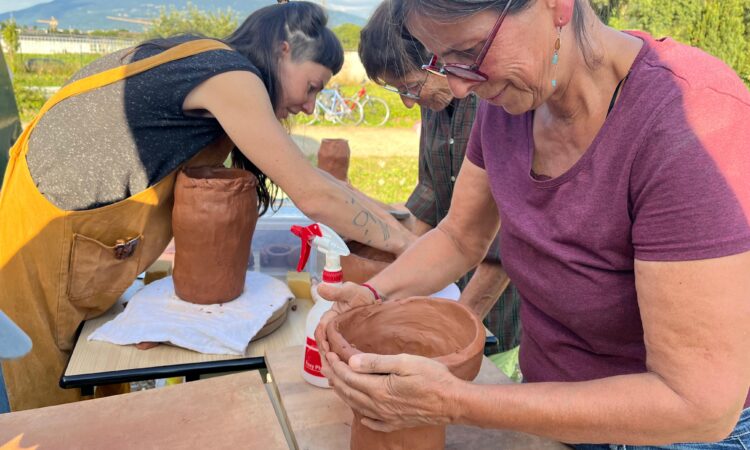 Les jarres sont façonnées collectivement, puis en fois cuite, mise à disposition du centre nature de La Libellule.